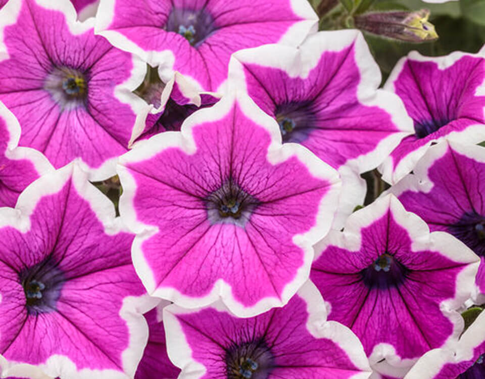 Vibrant, lavender purple petals are strikingly outlined by white edges for a unique pop of color. They can be planted in containers as fillers or spillers, or toward the front of garden beds. Perform well with regular fertilization and benefit fron a trim during the hottest time of year. Supertunias are heat tolerant and don’t require deadheading